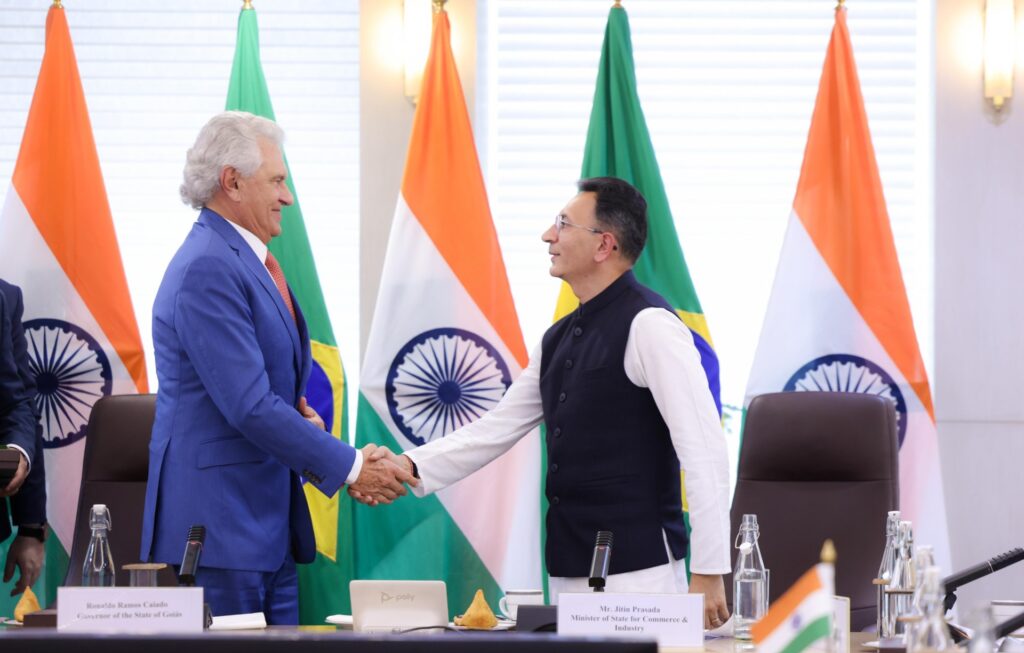 Tecnologia, inovação, inteligência artificial e combustíveis renováveis foram os principais temas abordados durante a primeira agenda oficial do governador Ronaldo Caiado (União Brasil) na Missão Índia, nesta segunda-feira (10/2). Horas depois de desembarcar no país asiático, o chefe do Executivo goiano teve audiência com o ministro de Comércio e Indústria da Índia, Jitin Prasada, ocasião em que formalizou a intenção de firmar parcerias para a troca de experiências.