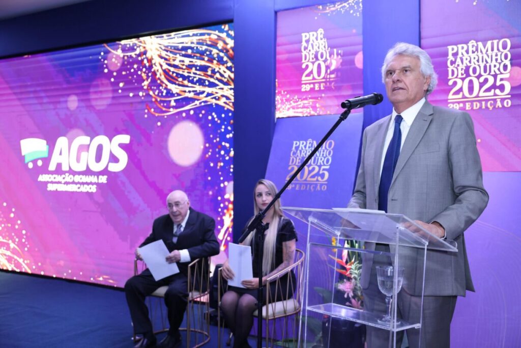 O governador Ronaldo Caiado classificou, nesta quarta-feira (07/05), o setor supermercadista como um dos responsáveis por “alavancar a economia de Goiás e do Brasil”. A fala ocorreu durante a solenidade de entrega do 29° Carrinho de Ouro. Considerada o Oscar dos Supermercados, a premiação é promovida anualmente pela Associação Goiana de Supermercados (Agos).