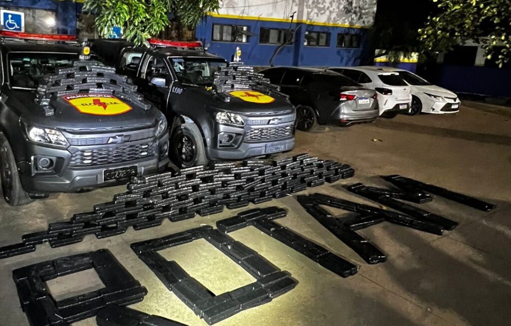 De acordo com a corporação, a carga totalizava cerca de 600 quilos de entorpecentes. Além da maconha, os militares encontraram maquinários usados para a produção e distribuição de drogas, como uma prensa hidráulica e uma balança industrial. Um carro que seria utilizado para as entregas também foi apreendido, além de um celular e um caderno com anotações relacionadas ao tráfico. O nome do detido não foi informado.