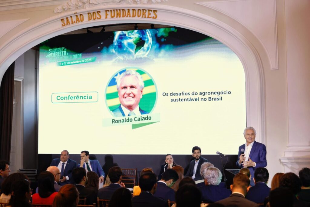 O governador Ronaldo Caiado destacou, nesta quinta-feira (11/09), as ações desenvolvidas pelo Governo de Goiás em prol do avanço sustentável do agronegócio no estado, durante sua participação no 3º Congresso Brasileiro de Direito e Sustentabilidade, em Salvador (BA).