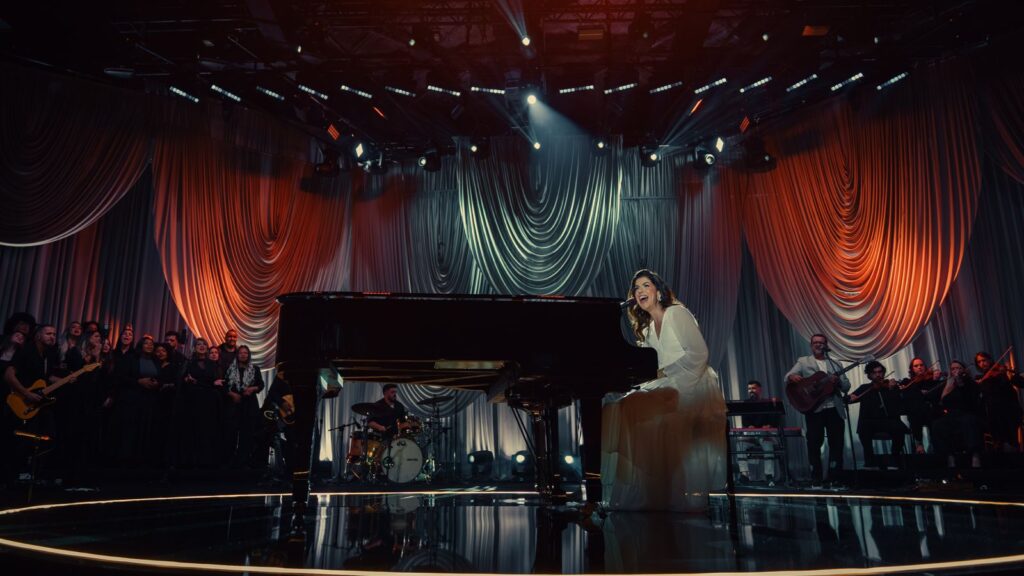 Com produção musical assinada por Hananiel Eduardo, e direção de vídeo de Alek Lemes, a gravação apresentou um conceito grandioso e intimista. O palco — estendido para mais perto do público e com cenografia envolvente, repleta de luzes suaves e tons quentes — criou um ambiente acolhedor que refletiu a sensibilidade e espiritualidade da artista.