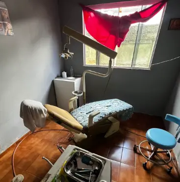 Durante a fiscalização, os policiais encontraram diversos instrumentos e equipamentos característicos de um consultório odontológico.